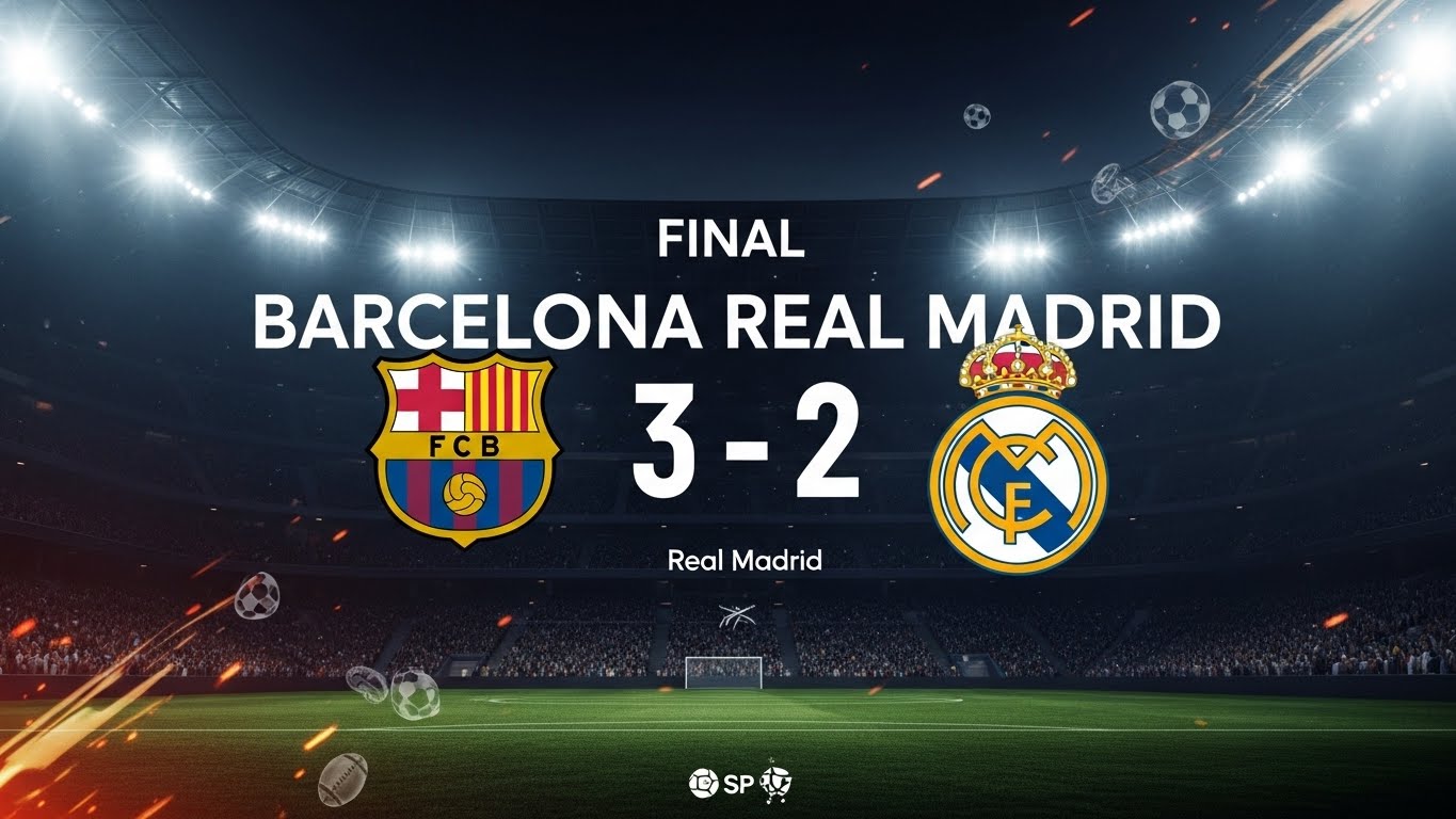 Barcelona claimed the Spanish Super Cup after a gripping 3–2 victory over fierce rivals Real Madrid in an emotionally charged final played on Sunday night in Jeddah, Saudi Arabia. The win capped a dramatic El Clásico encounter that swung repeatedly before Barcelona held on to lift the trophy.